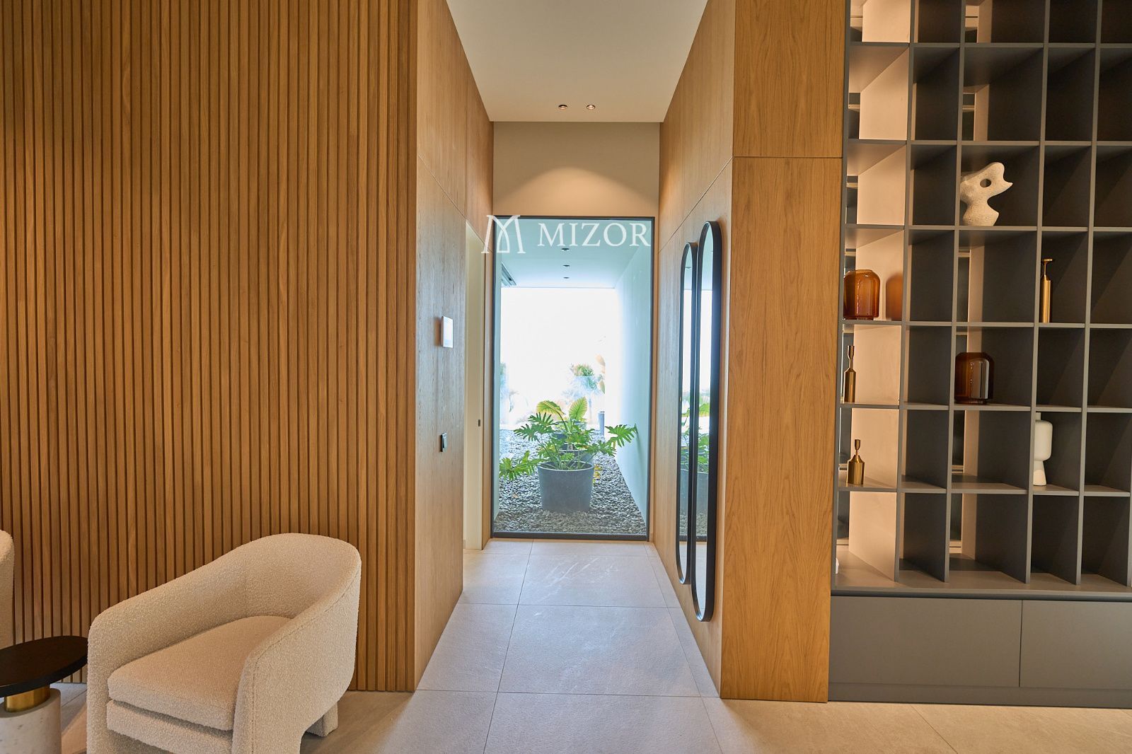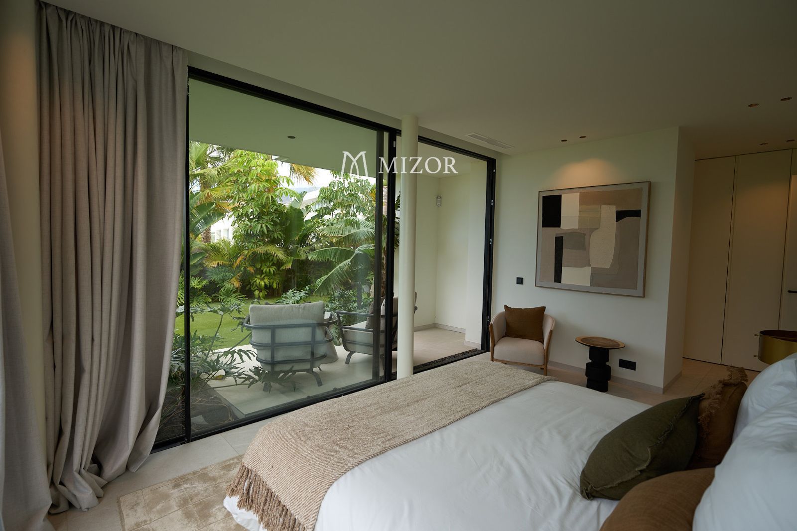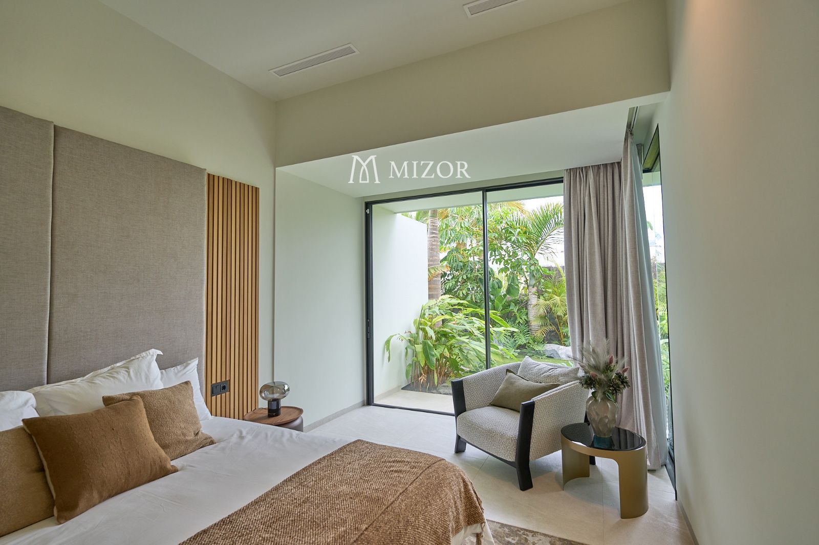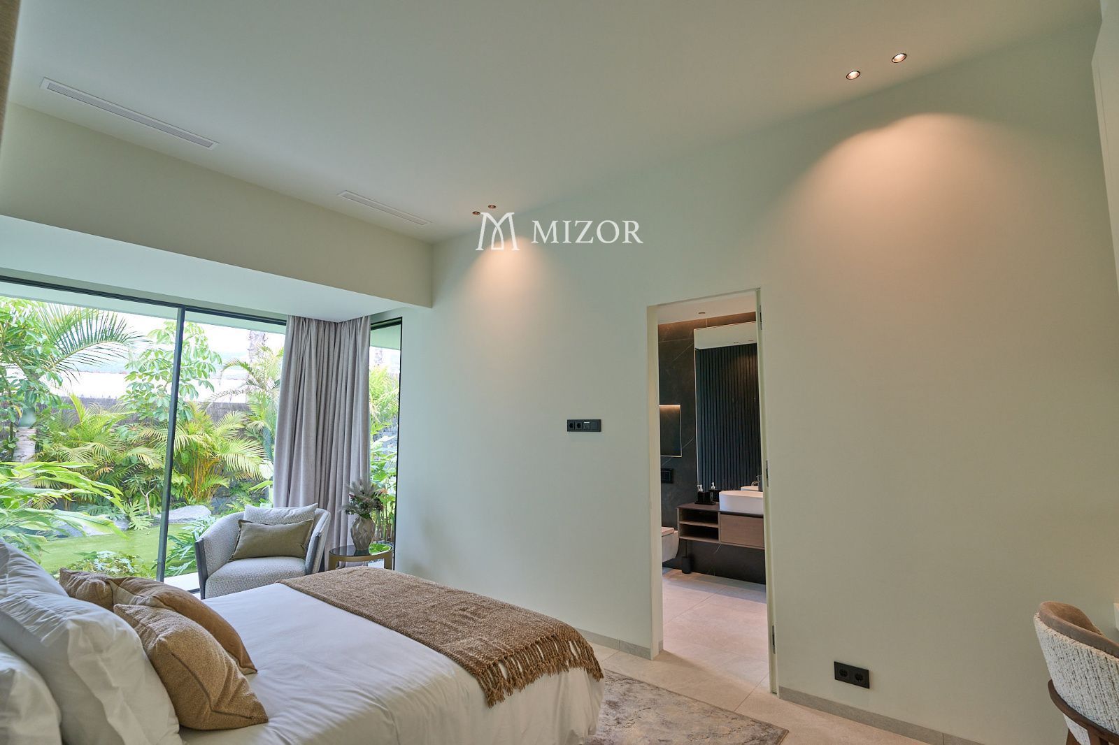 Cuenta con cuatro elegantes suites, todas con armarios empotrados y salida directa al jardín tropical, creando un ambiente íntimo y relajante. En la planta superior se sitúa la zona social, donde un amplio salón-comedor se abre hacia una cocina moderna totalmente equipada y una bodega climatizada, ideal para los amantes del vino.