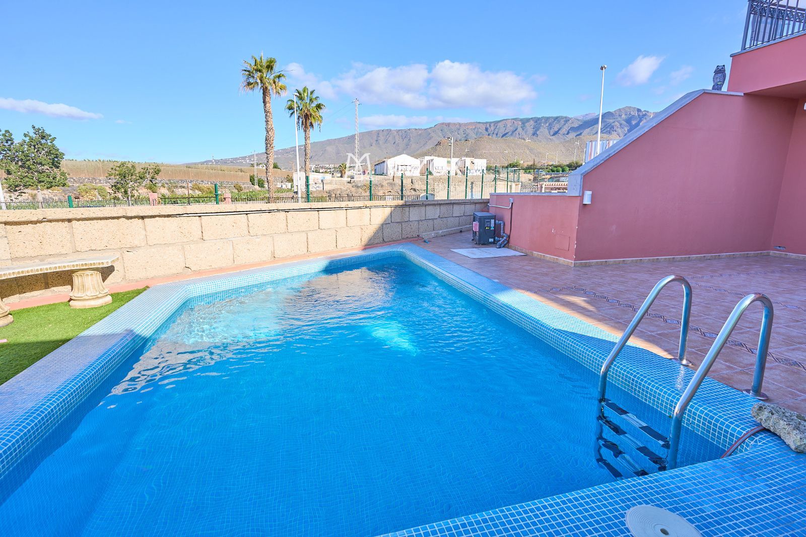 Desde la parte trasera de la vivienda se accede cómodamente a la piscina comunitaria, y como valor añadido, la casa dispone también de una piscina privada climatizada. Una propiedad única que combina ubicación, diseño y calidad de vida en uno de los enclaves más demandados de Tenerife.